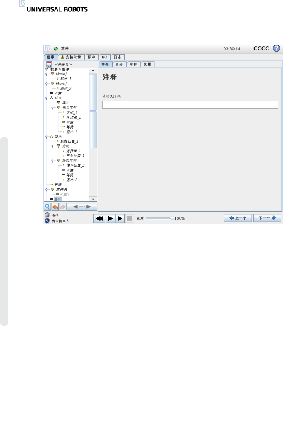 1.2 5.15. 命 令 : 文 件 夹 文 件 夹 用 于 组 织 和 标 记 程 序 的 特 定 部 分 , 以 使 程 序 树 清 晰 明 了 , 让 程 序 更 易 于 查 看 和 导 航 。 文 件 夹 对 程 序 及 其 执 行 没 有 影 响 。 用 户 手 册 1 6 7 U R10 版 权 所 有 © 2 009–2021U ni ver s al R obots A/S 。 保 留 所 有 权 利 。
