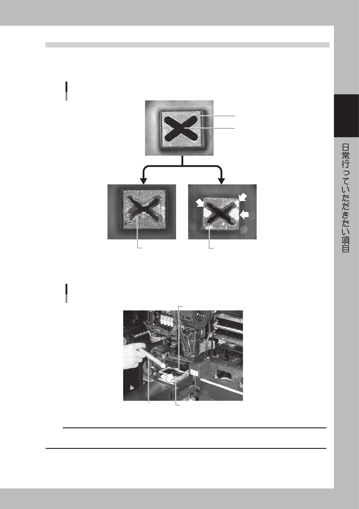 上記のいずれかに問題があるときは、「第 4 章1. ノズル板バネの交換」を参照して板バネを交換してください。交換する場合は