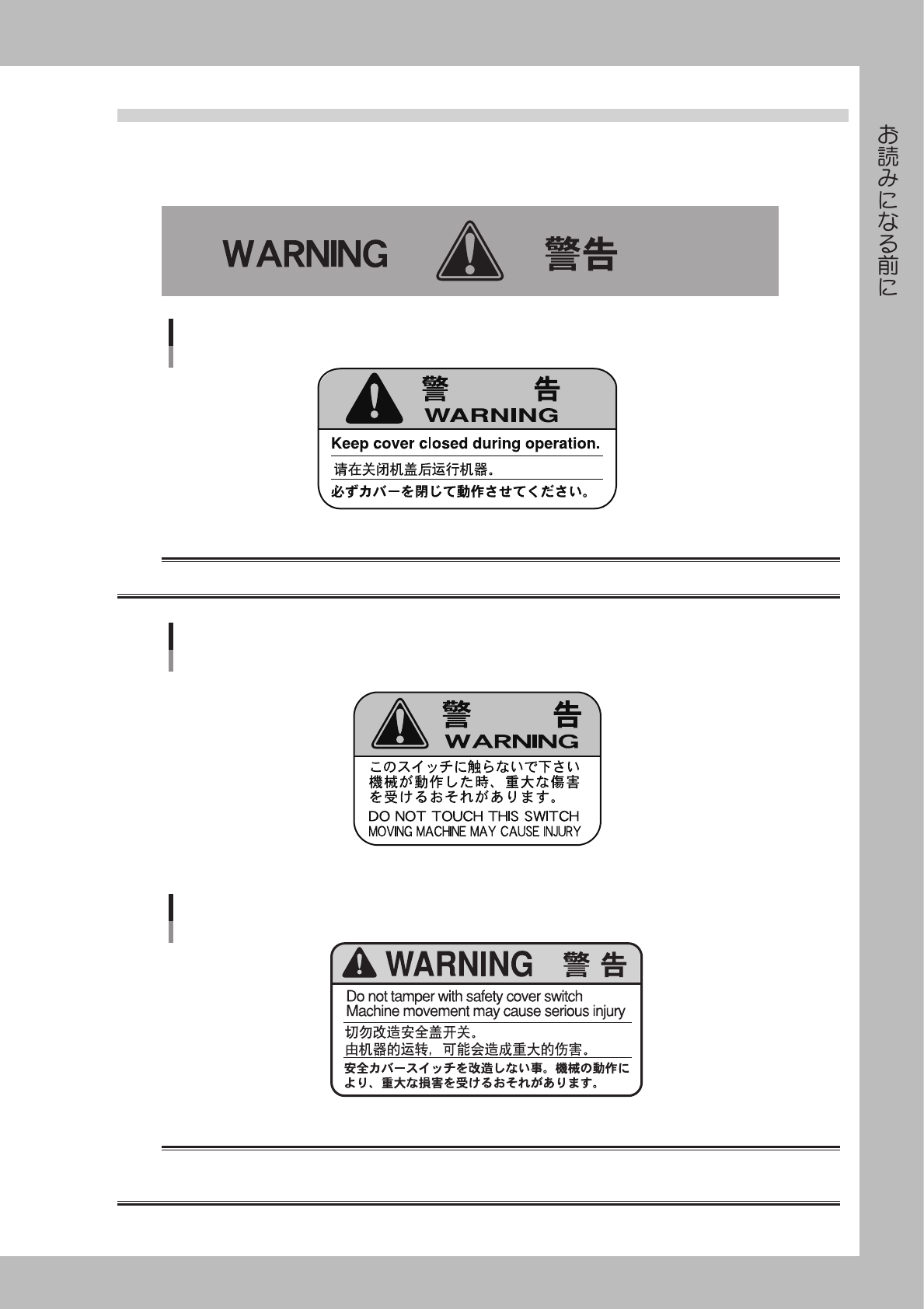 機械には警告ラベルが貼られていますので、内容を確認して指示を必ず守ってください。ここでは、サーフェ