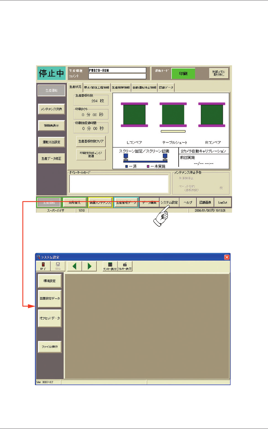 メインメニューバーの[システム設定]ボタンを押すと、編集画面