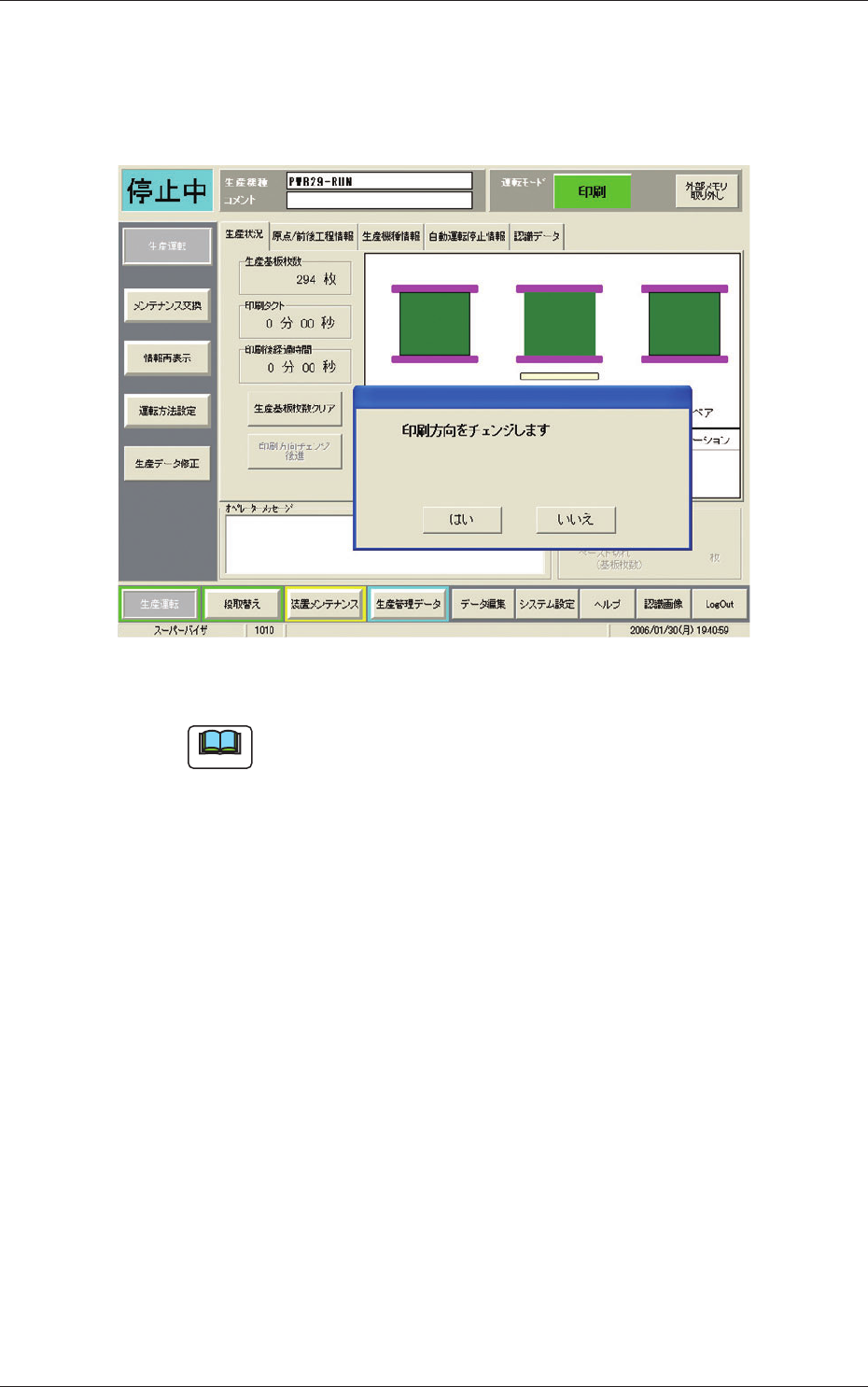 ウの [ はい ] ボタンを押すと、次に印刷する基板の印刷方向を