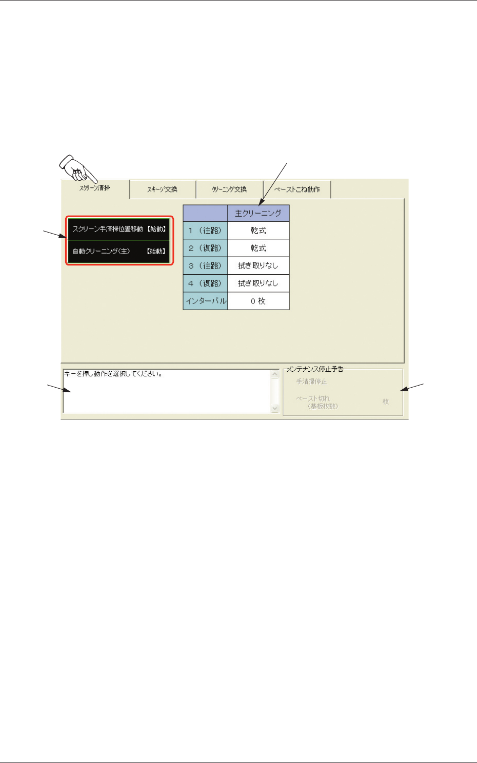 スクリーン清掃 手清掃時のスクリーン枠およびスキージの移動操作、自動クリーニ