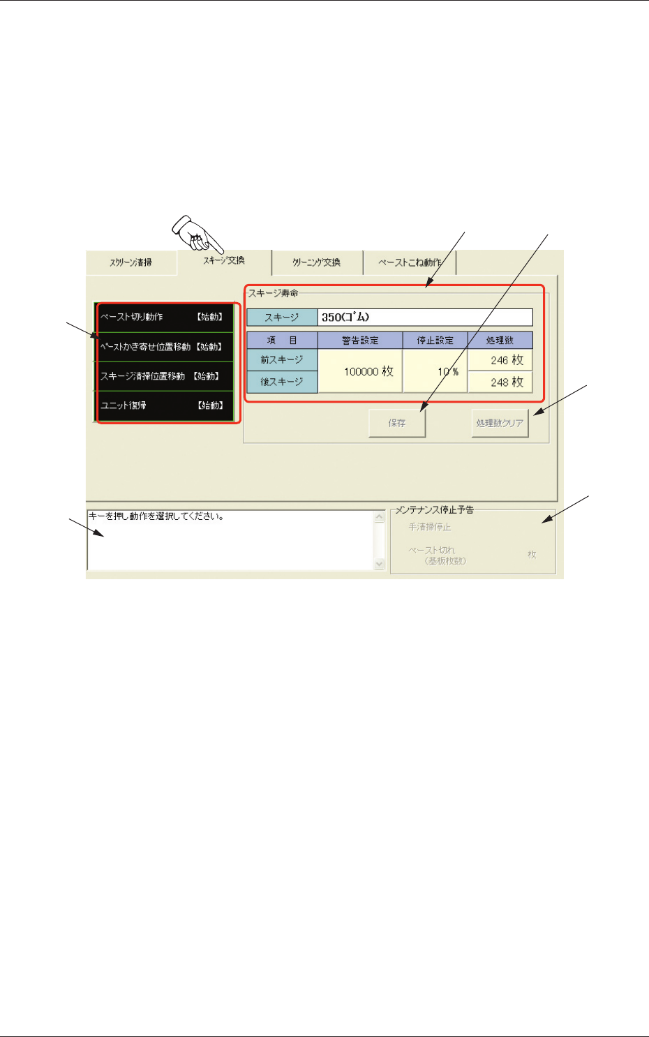 “メンテナンス交換”サブメニュー画面の[スキージ交換]タブを押