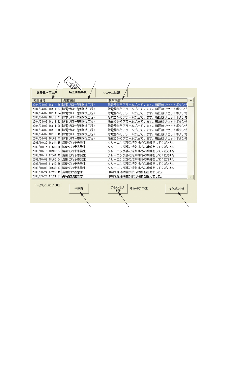 異常の内容に応じて定めた異常項目を昇順または降順(50 音順)