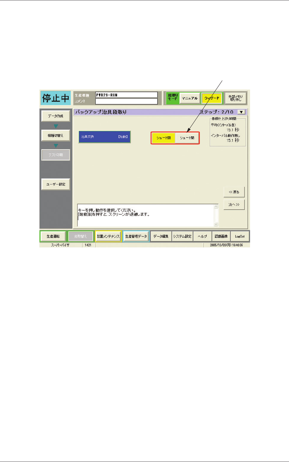 バックアップ治具の交換は、[1] ボタンで以下の 2 種類のモードを選