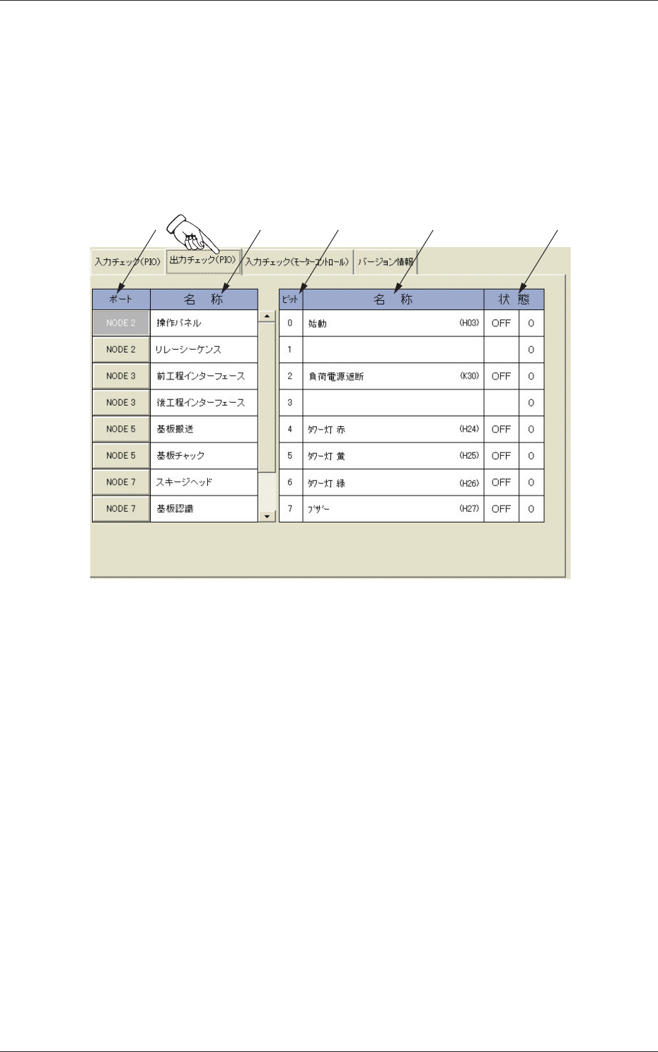 “装置診断”サブメニュー画面の[出力チェック(PIO)