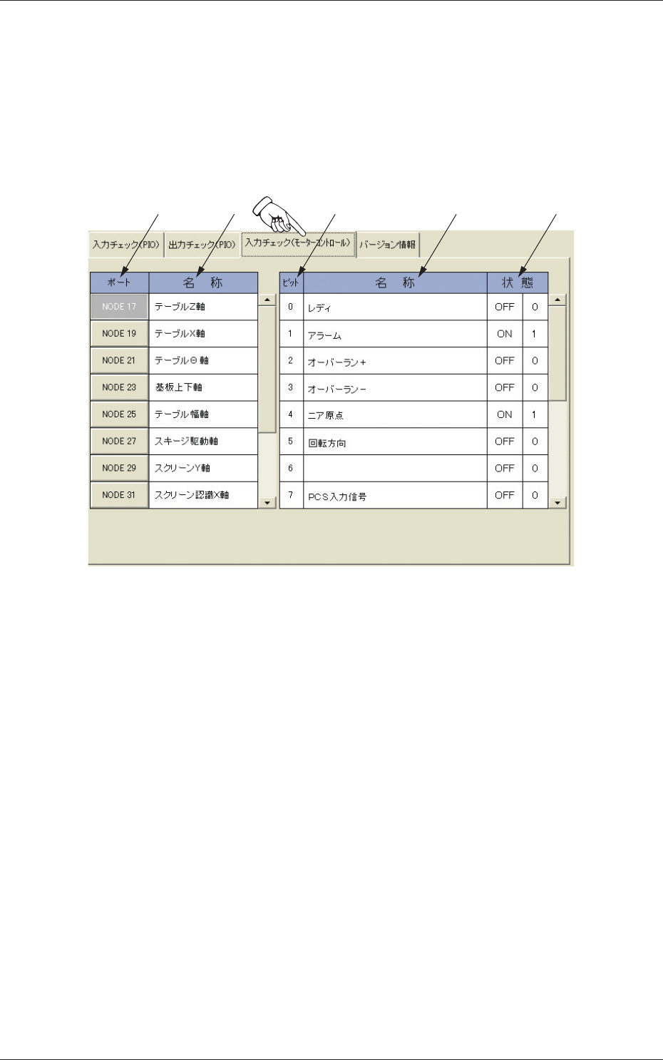 “装置診断”サブメニュー画面の[入力チェック(モータコントロー