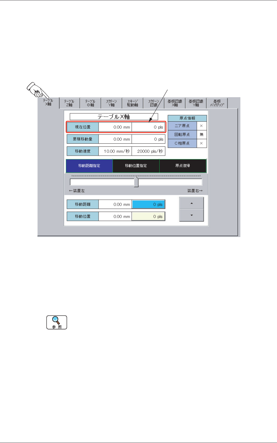 ユニットの現在の位置が、移動距離とパルス数で表示されます。