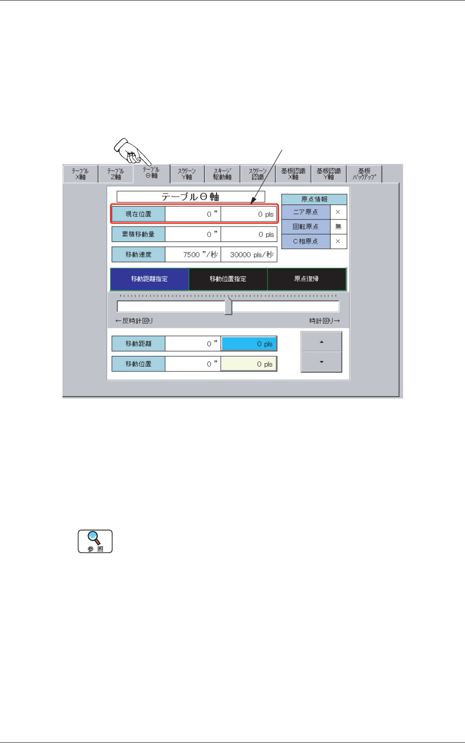 ユニットの現在の位置が、移動距離とパルス数で表示されます。