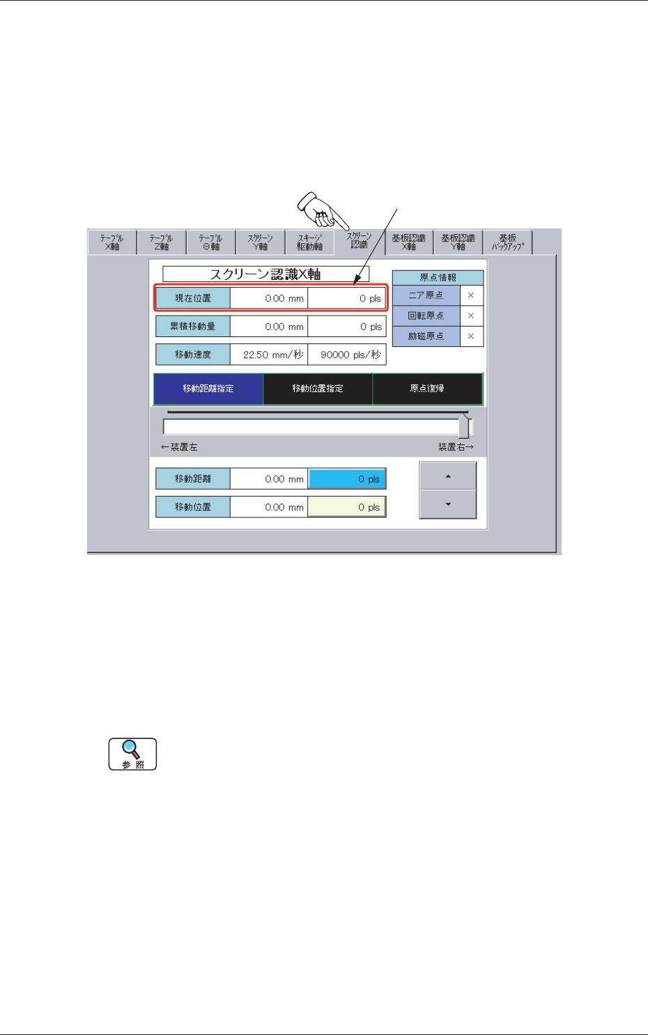 スクリーン認識部の X 軸のインチング操作を行います。