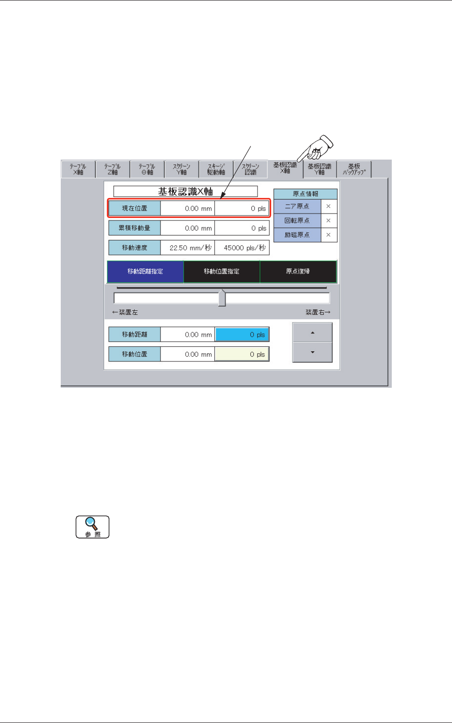 基板認識部の X 軸のインチング操作を行います。