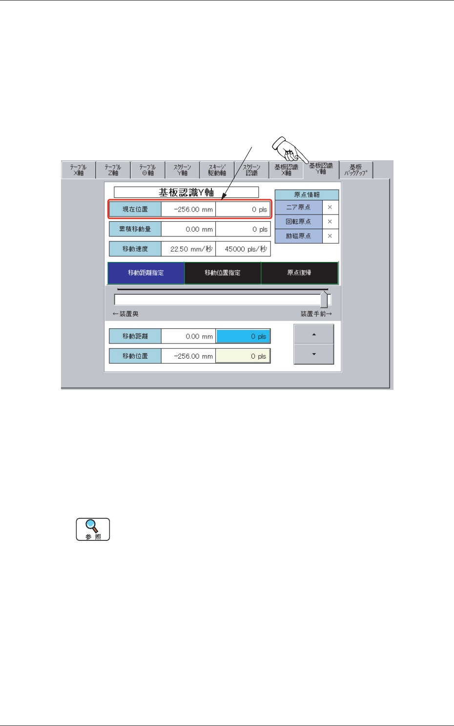 基板認識部の Y 軸のインチング操作を行います。