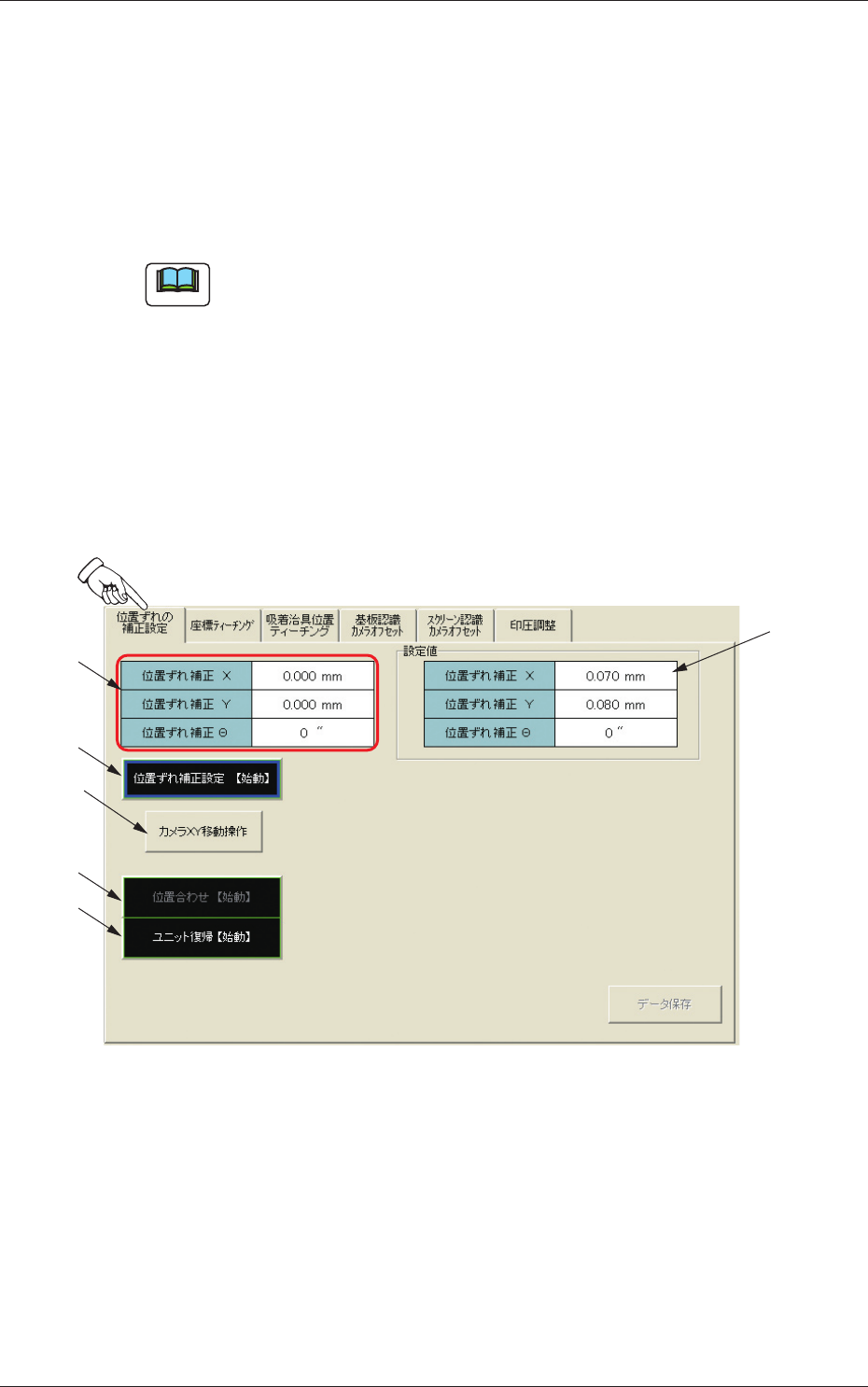 (a) 位置ずれ補正により設定されたデータは、[データ保存]ボタ