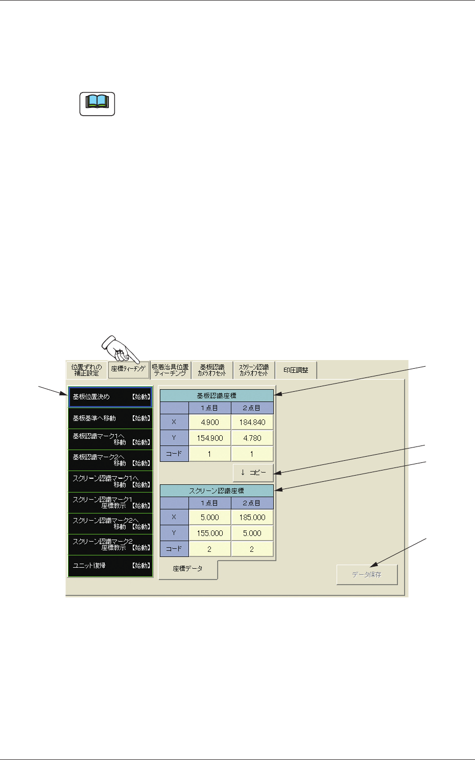 “ティーチィング”サブメニュー画面の [ 座標ティーチング ] タブを