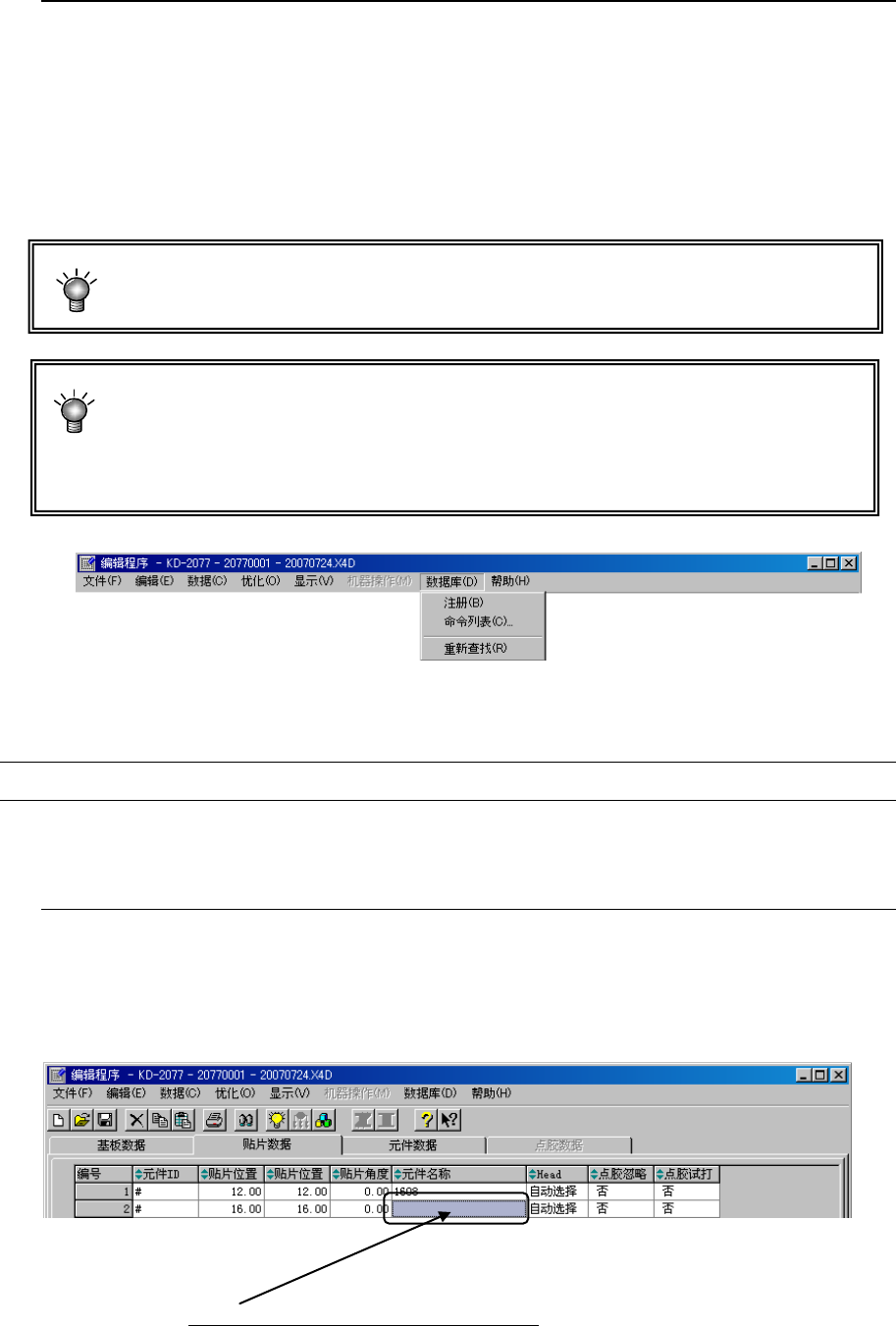 数据库”是指用于注册元件数据(包括点胶数据)的程序库。