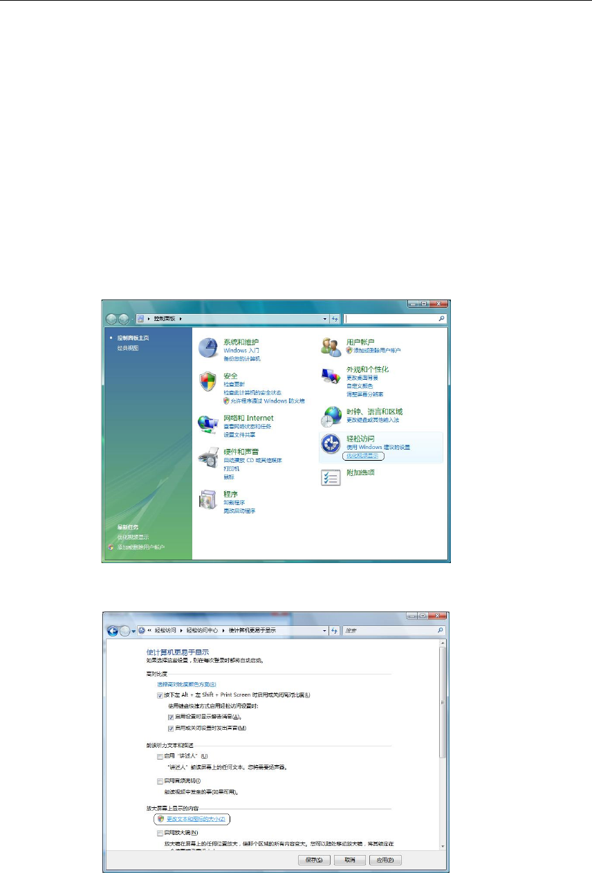 ① 在控制面板中,选择「轻松访问」-「优化视觉显示」。