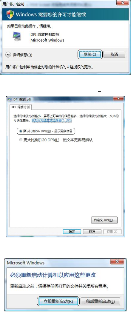 ④ 在DPI缩放比例处选择「默认比例(96DPI)(D)-显示更多信息」,选择「确定」。