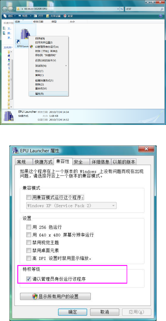 ① 右键点击RX-6系列 EPU的“EPU Launcher”,选择属性。