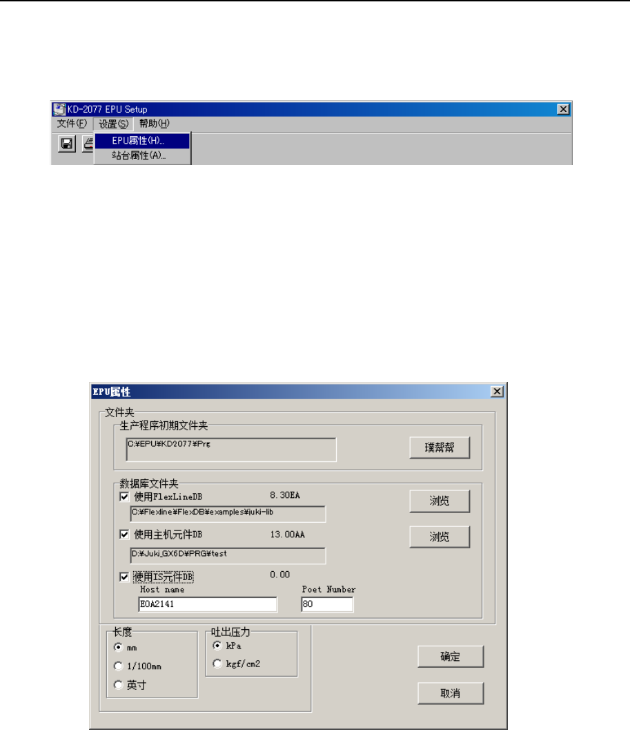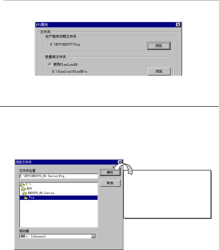 指定装有EPU使用的生产程序文件夹和数据库文件。
