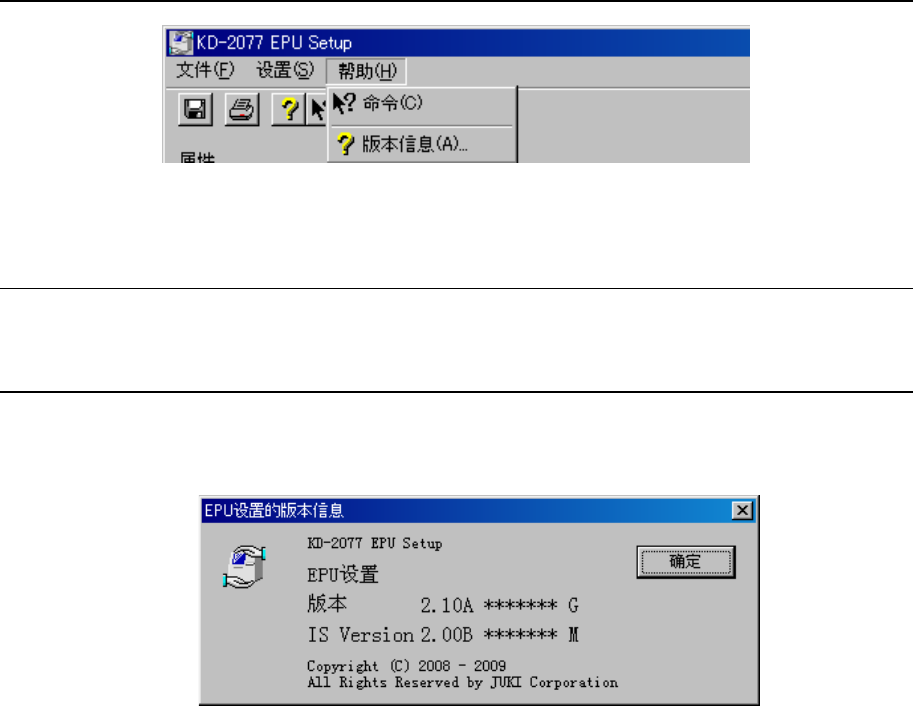 显示「EPU设置」及元件数据库(使用元件数据库时)的版本信息。