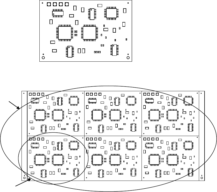 ◆矩阵电路板: 如图所示,是指在一块基板上,存在多个电路,所有电路的角度相同,