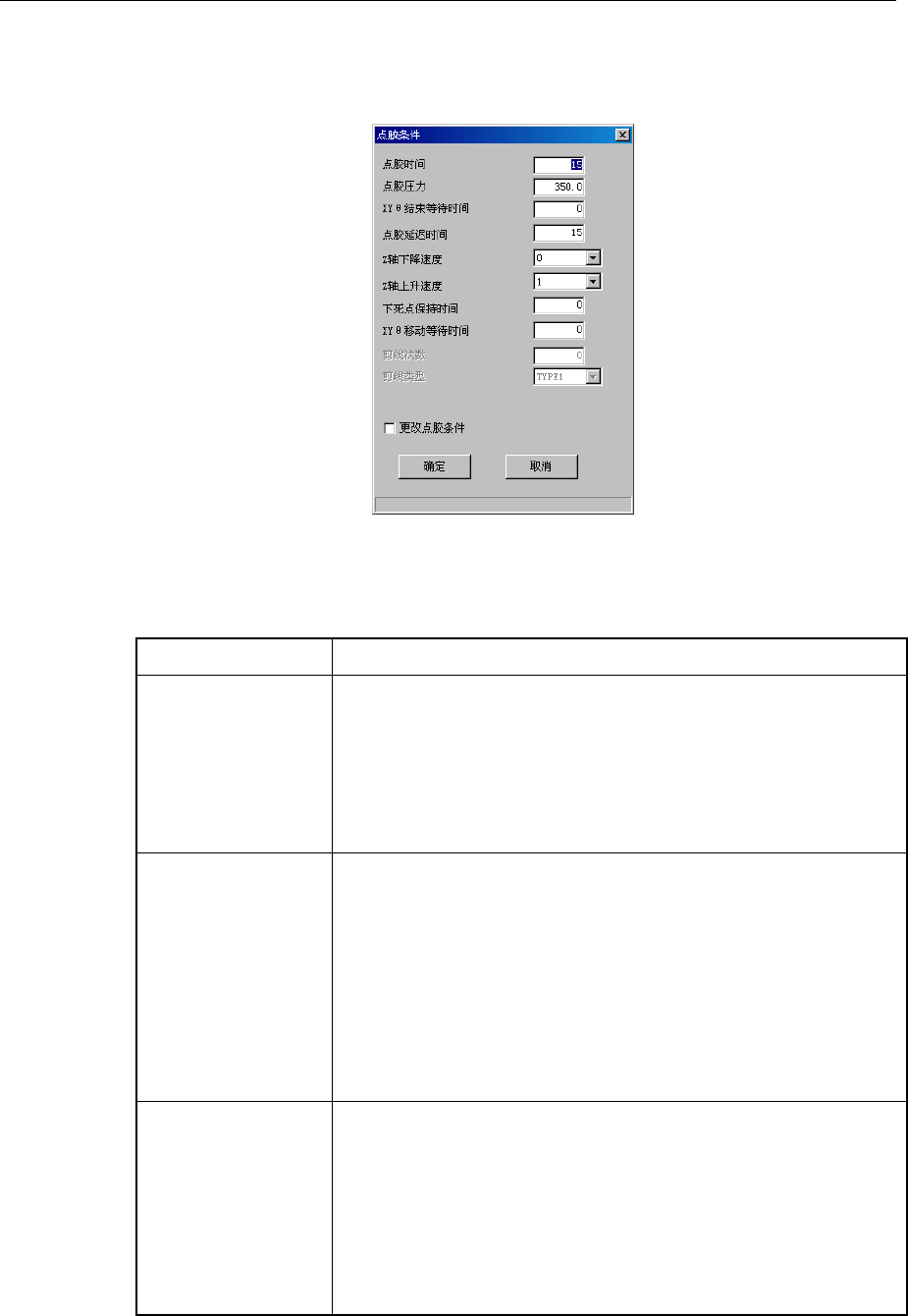 表 4-1-6-3-1 点胶条件设置项目