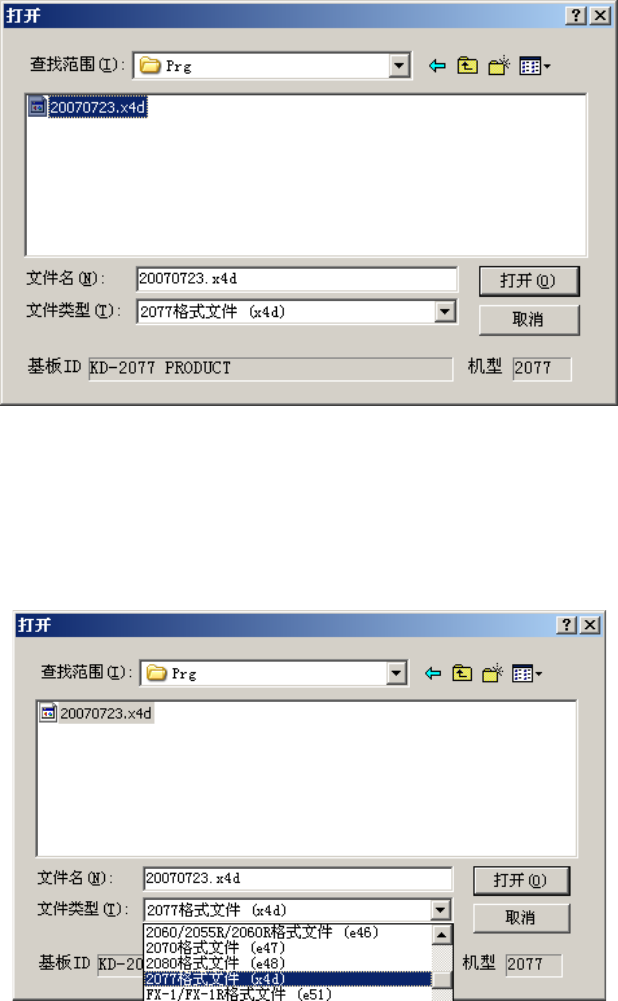 若要读取其它机种的生产程序时,请选择“文件类型”后,再点击「打开」。