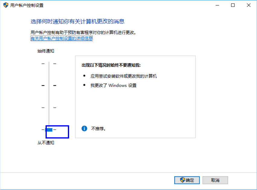 ⑤ 全部软件安装完成后请将“用户帐户控制(UAC)”重新设置为有效状态。