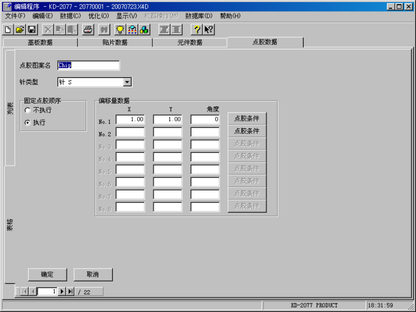 点胶数据的输入画面,有表格显示和列表显示 2 种形式。