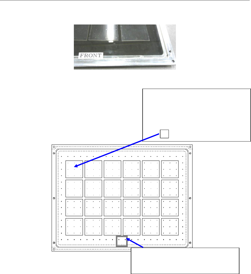 FCS 使用说明书 1-6 1-3-2 测定的准备 (1) 模具基板的方向 在实施 FC S 时, 请设置模具基板 使“ Fr ont 片” 总在前面 、表面位 置 处。 图 1-4 前侧片 (2) 粘贴标签与 硅胶片 的粘贴 将粘 贴标签 按照下图所示粘贴至 玻璃模具基板。 图 1-5 粘贴标签与 硅胶片的 位置 除去最外圈, 对 216 点( 12×18 )标 记 ,请 按照每 9 点( 3×3 ) 标记上均 等地粘贴 1 片 粘贴…