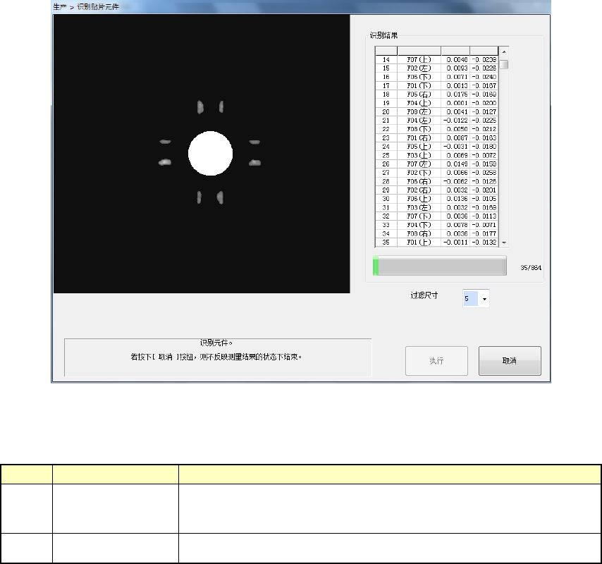 完成XY偏移量取得用元件的贴片后,将自动显示如下图所示的 [识别贴片元件] 画面。