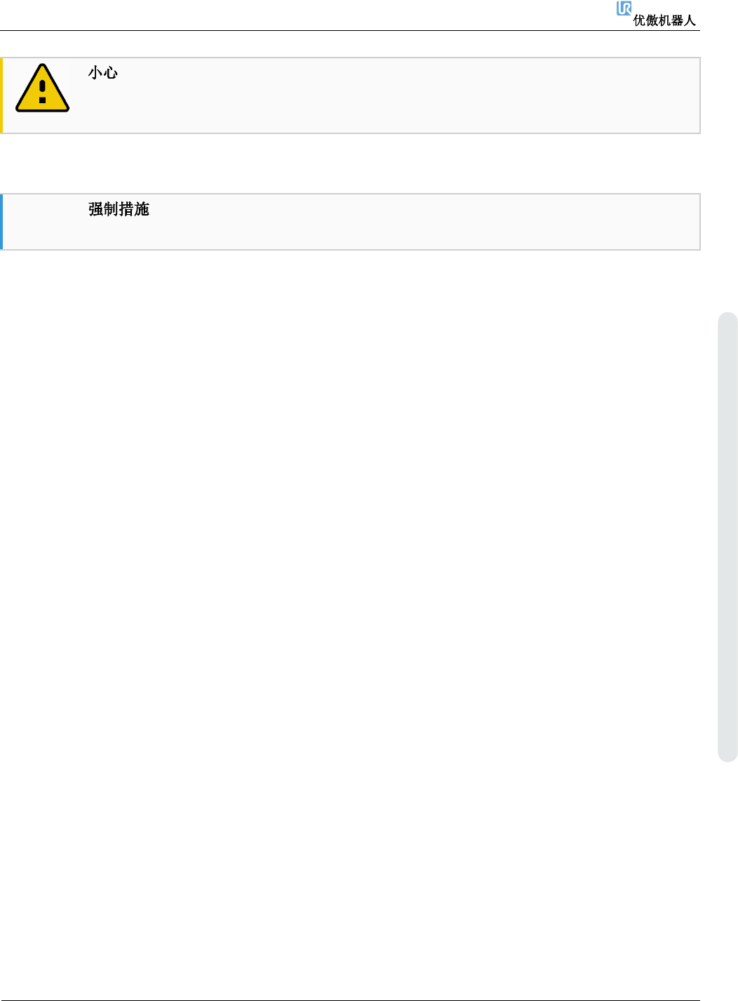 2. 处理易受静电放 电损坏的 零件 维修手册 4 维修手册 版权 © 2009 – 20 2 0 优傲机器人公司版 权所有。保留 所有权利。 2. 处理易受 静电放电损坏的零 件 为保护易受静电 放电损坏的零件(如印刷电路 板)不受损坏,除了采取 所有常规的预 防措施外,还要 遵 照以下说明操作 ,例如,在拆除电路板之前关闭 电源 。参见 完整的重启序 列 章节 在更换任 何易受静电放 电损坏零件之前, 请确保配 备防 静电 腕带和备…