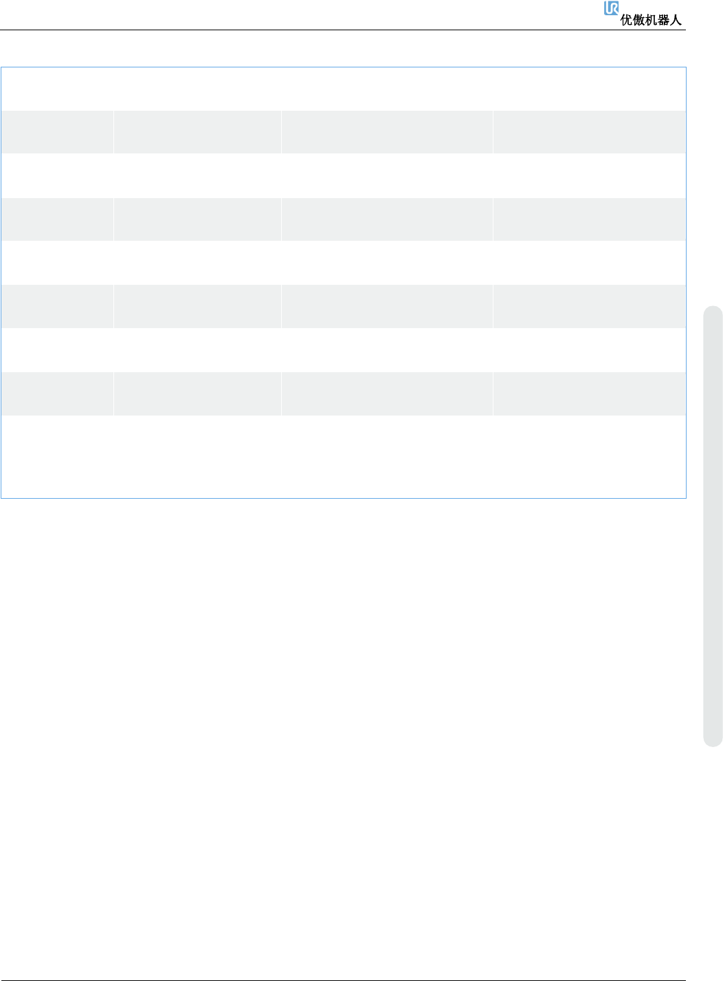 6. 故障排除 维修手册 105 维修手册 版权 © 2009 – 20 2 0 优傲机器人公司版 权所有。保留 所有权利。 C191A20 未 收 到 配 置 信 息 或 限 值 设置 C191A21 另 一 安 全 处 理 器 检 测 到 违规 C191A22 收 到 控 制 器 发 送 的 未 知 命令 C191A23 安全限值设置无 效 a) 检查固件 / 更新固件。 b) 执行完整的重启序列 C191A24 在 不 应 设 置…