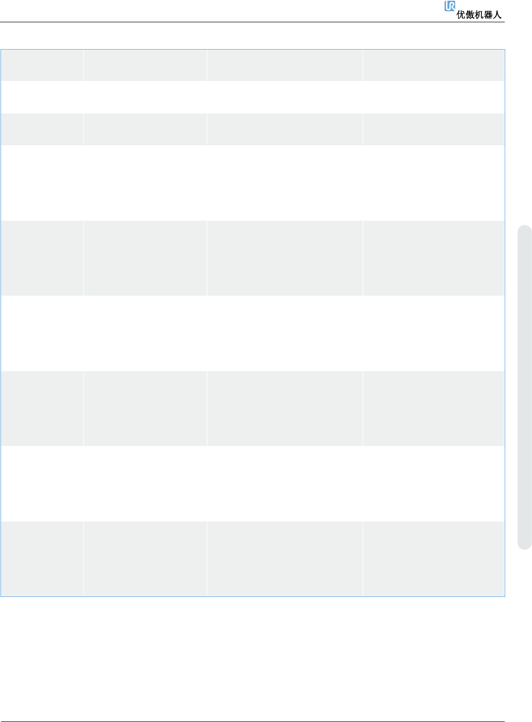 6. 故障排除 维修手册 134 维修手册 版权 © 2009 – 20 2 0 优傲机器人公司版 权所有。保留 所有权利。 C281A9 {unsigne d} 关 节 在 机 器 人 进 入 “RUNNIN G” 状 态 之前移动的太远 制动器释放过程 中, 关节移 动超 出允许的范围。 a) 执行完整的重启序列 b) 确 保 安 装 的 有 效 负 载 、 工 具 中 心 点 和 TCP 与 您 的配置相符。 c) 更新软件 d)…