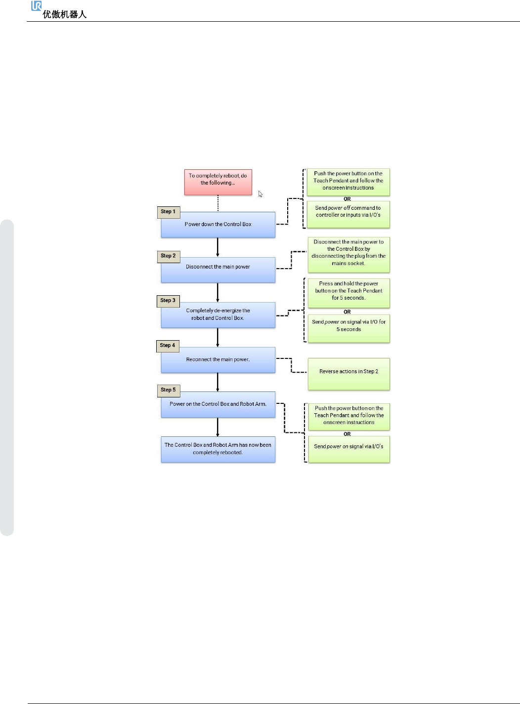 若要完全重启机器人系统,请执行以下步骤: