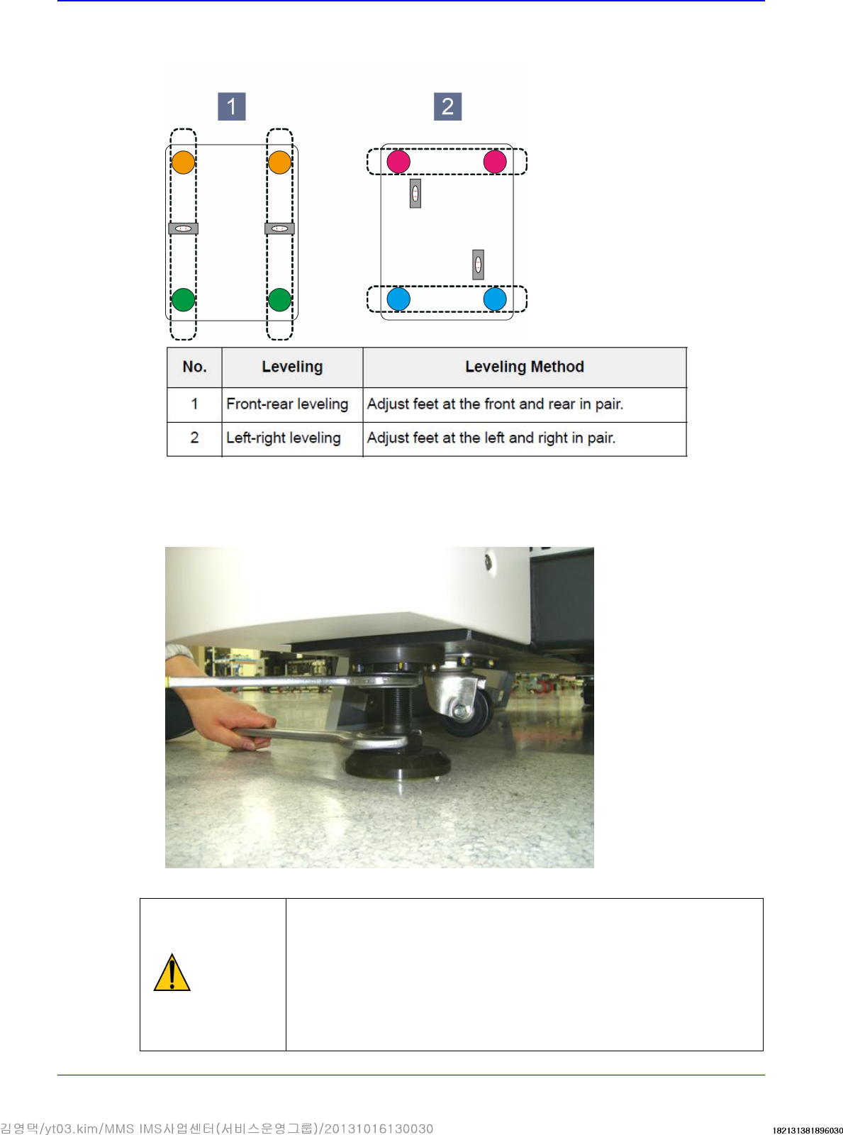 4. Perform the procedure of leveling the machine again. (Refer to “2.1.3.2 Installation procedure