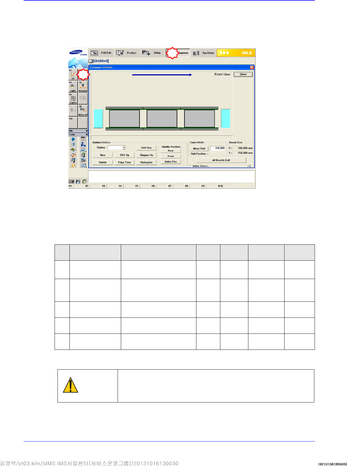 3. Feed the PCB in the ‘Conveyor Utilities’ dialog box and check if the board detection sensor in