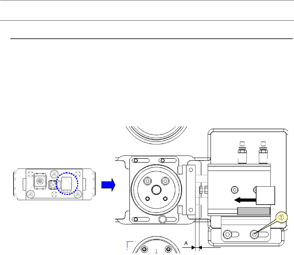 1) BU 止动器的前后位置,在空气 ON 的状态,BU 止动器(橡胶部)顶到球螺丝法兰盘外周的状态,