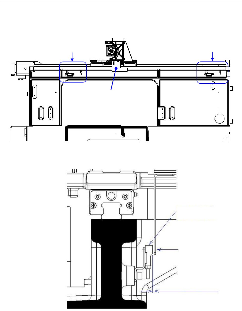 1) 松开 Y 极限传感器托架的止动螺丝进行调整,离开座架之开尾销安装中心位置的距离要成为下图