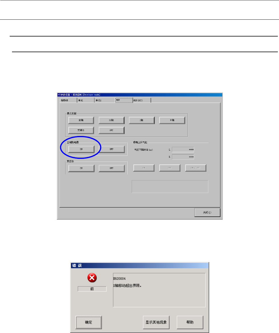 6) 解除后,与第 3)步的操作一样请接通主电路电源,关闭监视器的 X 轴移动极限显示。