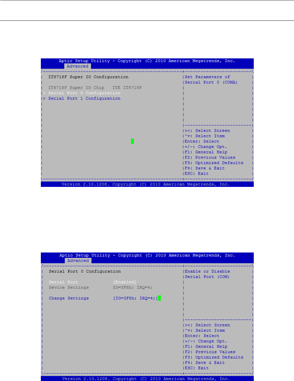 图 13-2-2-1-10 BIOS 画面(Advanced :Serial Port 0 Configuration)