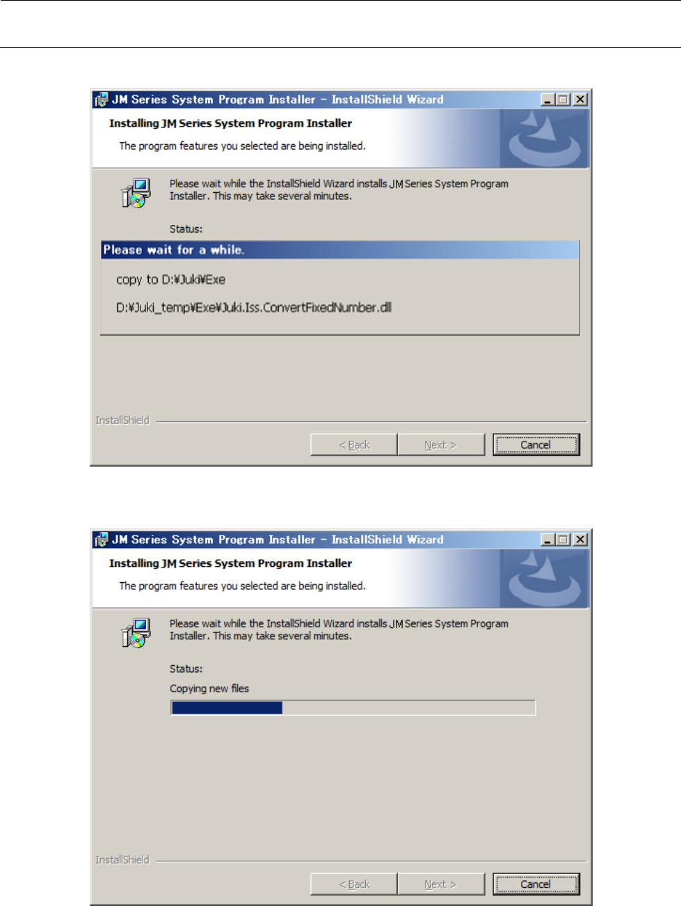 维修调整要领书 13 - 69 9 ) 在 8 )的“现有软件的备份”的选择中点击了“ Yes ”时,会显示正在建立现有软件备份的画面。 10 ) 安装中间,进行状态以进展条显示。