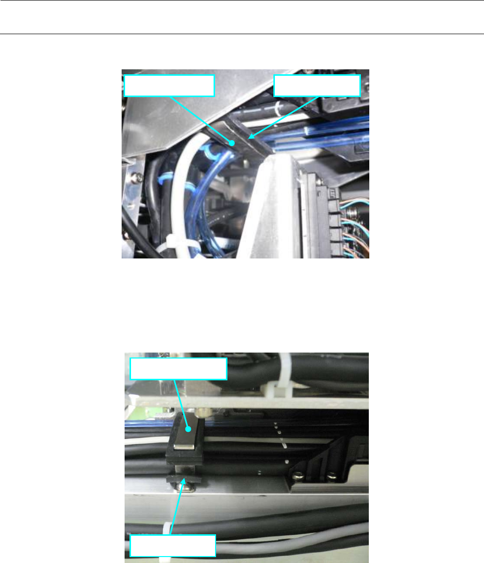 3) 将各电缆的记号位置对齐“电缆拖链支架”的左端(从后看),固定电缆的 Head 侧(移动端)。