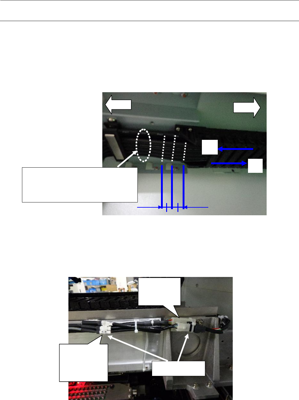 5) 将线束朝②的方向推入,在 Y 电缆拖链的移动端部(后方侧)的位置上沿并排方向在线束上标白