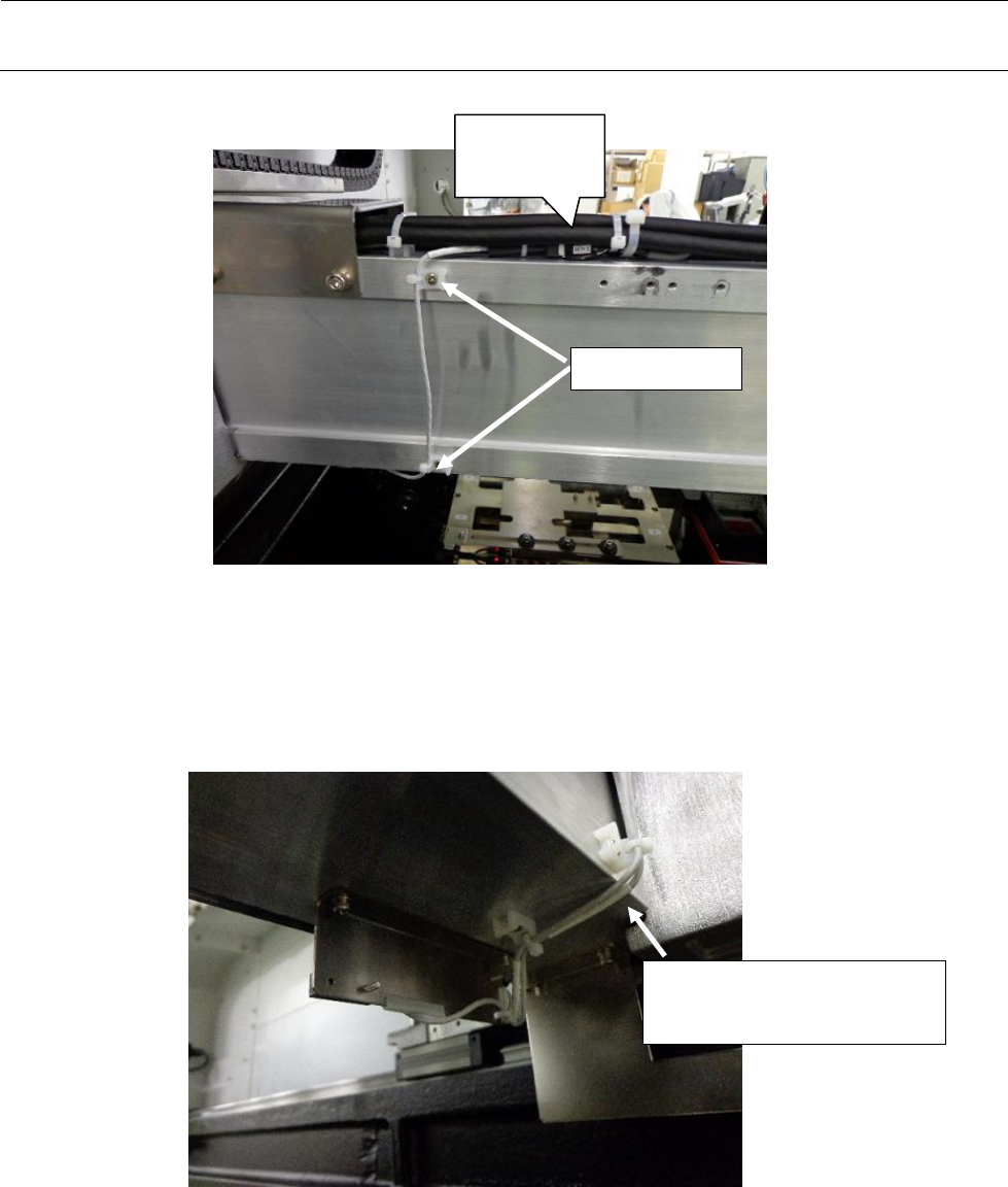 6) 调整线束,使 2 条记号的中间位置成为 Y 电缆拖链的端部(移动端部),予以固定。