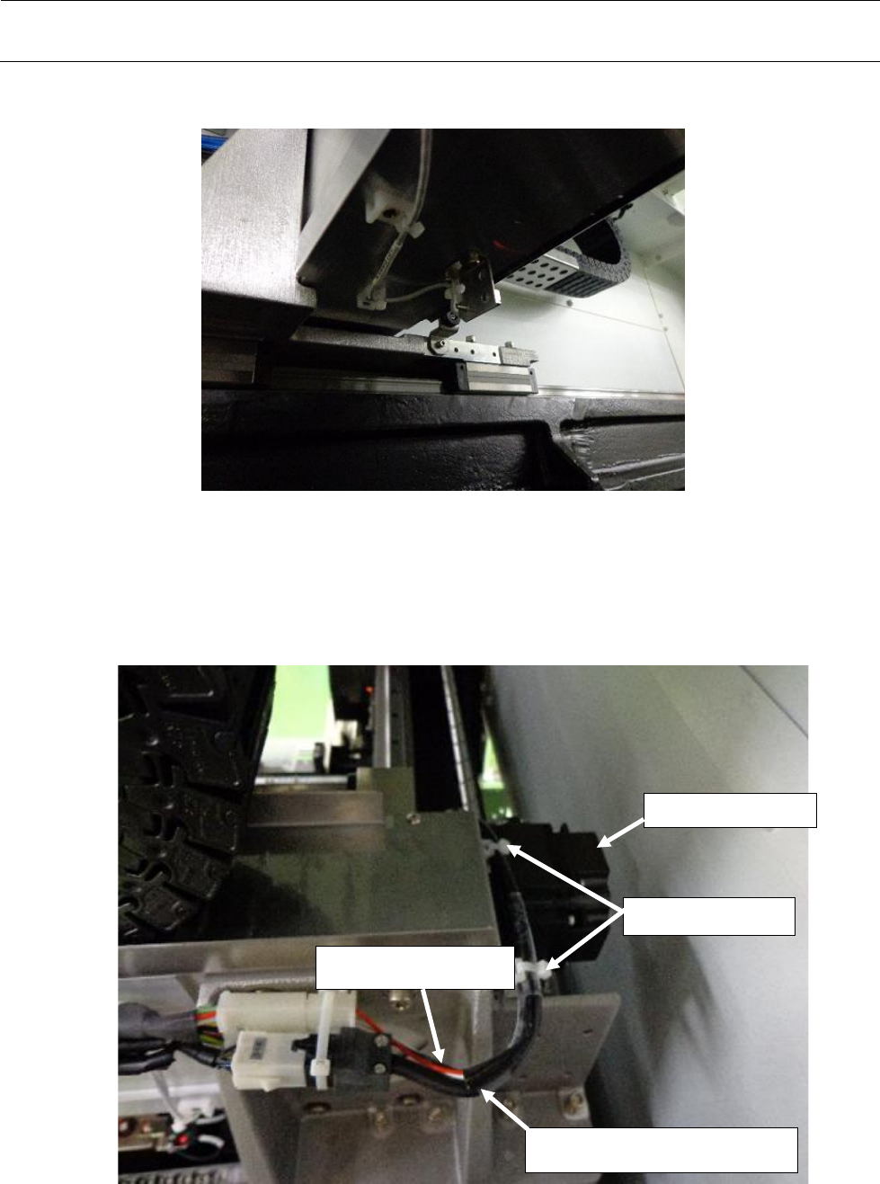 维修调整要领书 1- 21 图 1 -4- 5-5 8 ) 按照下图布设 X 轴传感器电缆。 图 1 -4- 5-6 以束线带固定 中继连接器 X+LIM X NEG LIMIT SENSOR ASM X NEAR SENSOR ASM