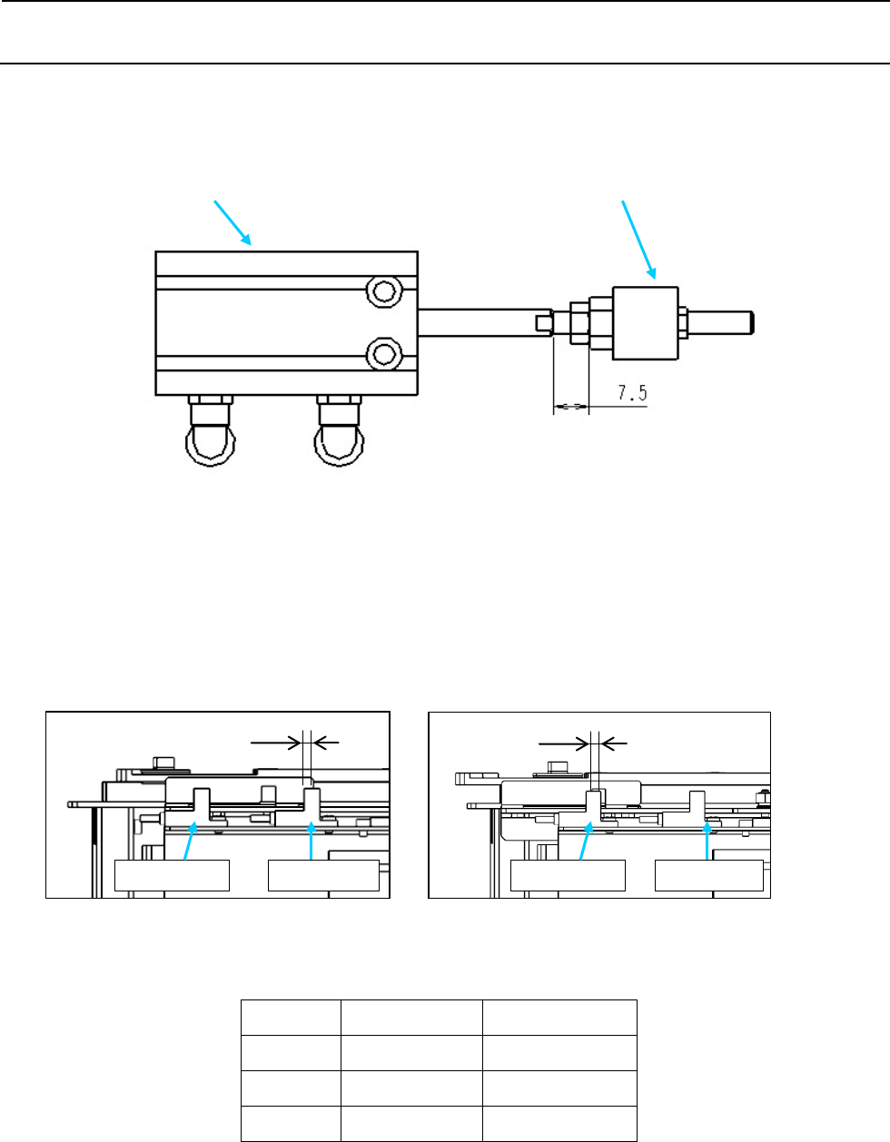 2) 从速度控制器卸下 φ4 空气管之后,卸下内六角螺栓,取下压力气缸。