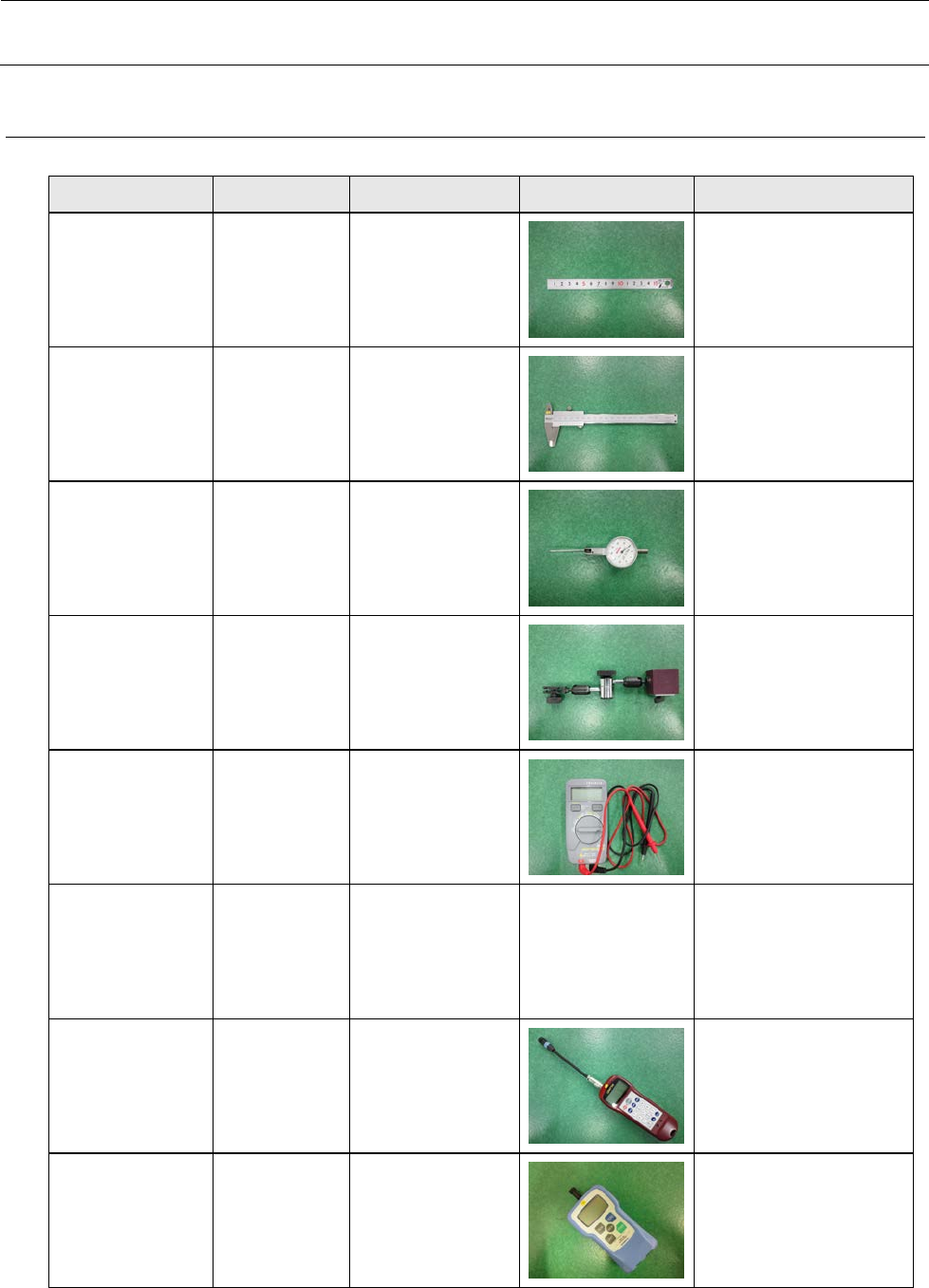 维修调整要领书 1 JM - 20 附录 测量 仪 器列表 机器名 必要 规格 使用装置 / 用途 图 备注 刻度尺 (150mm) 刻度值: 0.5mm 所有装置共用 游标卡尺 刻度值: 0.05mm 所有装置共用 杠杆千分表 刻度值: 0.01mm 所有装置共用 German 表架 所有装置共用 ( 杠杆千分表 的表架 ) 万用表 数字式 所有装置共用 秒表 台架 / 测定时间 张力测定计 贴装头 / 皮带张力 调整…