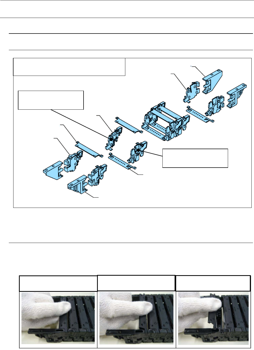维修调整要领书 1- 24 1-5 . 电缆拖链链板键的更换 1-5 -1 . X 电缆拖链的构造和名称 1-5 -2 . 链板 ・ 支撑板的拆卸 按下述操作顺序卸下链板 ・ 支撑板。 ※ 电缆拖链内的电缆有润滑剂(白色的膏状物)附着,所以要戴手套。 货号 ・ 品名: 40093872 Y_PLAS TIC_RAIL_L 货号 ・ 品名: 40098060 Y_PLAS TIC_RAIL_ XL 货号: 40098183 品名 : Y_…