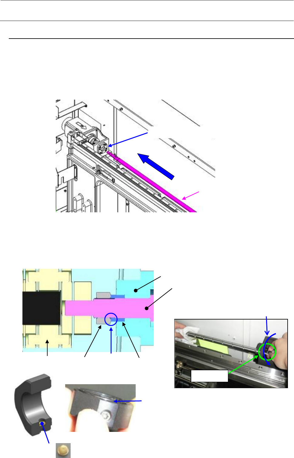 维修调整要领书 1- 39 ( 4 ) 从 Y_ADJUST_PLATE 中拔出 BEA RING 。 ( 5 ) 卸下滚珠螺杆螺母的固定螺丝。 ( 6 ) 拔出 Y 滚珠螺杆 ※ 不要赤手触摸滚珠螺杆(因为滚珠螺杆会生锈)。 Y_ ADJUS T _ PLAT E BEARING ※从装置内侧将 BEARING 朝 方向推出 ※拆下 SM60602002TN 4 个。 FIXED_ SUPPORT_UINT Y 滚珠螺杆 ※ 朝 方向…